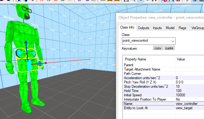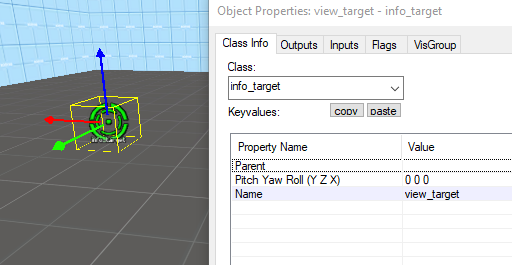 Placer le point que va regarder la caméra (info_target) en créant un entity de Class info_target.