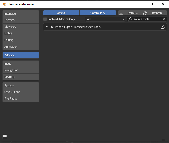 Activer «Import-Export: Blender Source Tools» il faut que la case soit coché.