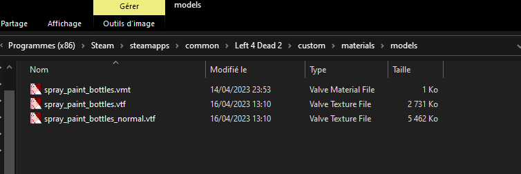 - Texture du modèle 3D (exemple: (hl2/materials/)models/prop/computer) (Seulement si vous choisissez .DMX)