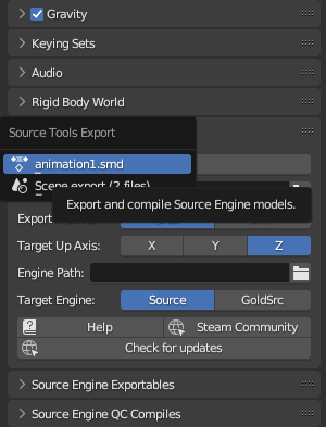 - Indiquer le dossier où sera exporter le modèle 3D en .smd (modelsrc)