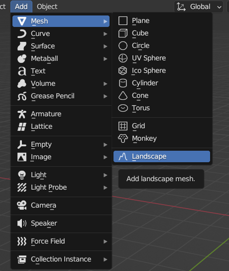 Appuyer sur "N" pour faire défiler le menu create et pouvoir crée ajouter un Landscape et un ciel.