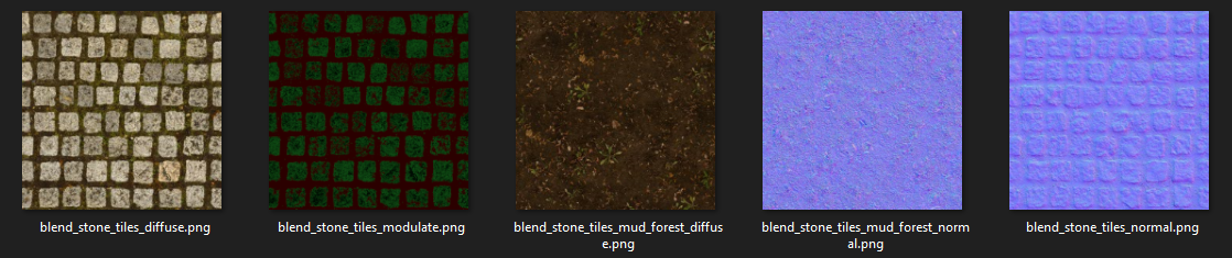 Pour créer, nous avons besoin des deux textures est une texture modulate rouge et vert qui va indiquer comment doive se mélanger les deux textures.